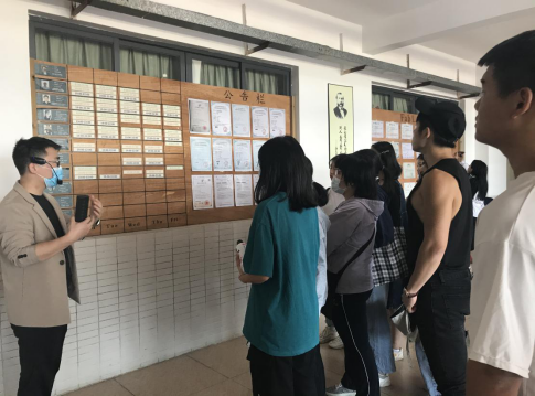 李健文老师为同学们详细介绍了管理类综合实验室,该实验室主要为管理类专业的学生提供管理实践平台,通过模拟公司经营、体验管理文化等方式,让同学们更好地将所学知识运用到实际管理操作中,在实操过程中,培养同学们的知识运用能力、团队合作能力、全局意识,提升同学们发现问题、改进问题的能力,举一反三,学以致用。参访的同学们认真欣赏了文化墙上的团队模拟管理作品,表现出对该门实操课的浓厚兴趣。
