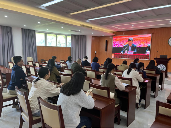 学校师生在广州校区第一会议室主会场观看报告会
