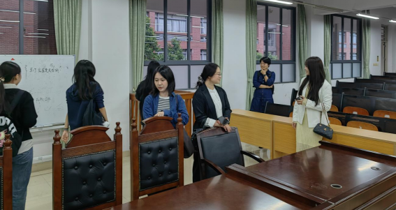 随后,双方人员一同参观东莞校区研究生培养基地,了解联合培养基地建设情况并提出改进建议。走访法学院、会计学院办公室及会计学院实验教学中心,观摩智慧教室、模拟交易实验室、图书馆等教学设施。在法学院模拟法庭与国际模拟法庭,师生们亲身体验沉浸式法律实践教学场景,感受法律的严谨与魅力。两校相关负责领导、导师代表及联合培养研究生齐聚一堂,共商合作新路径,为校际协同育人注入新活力。