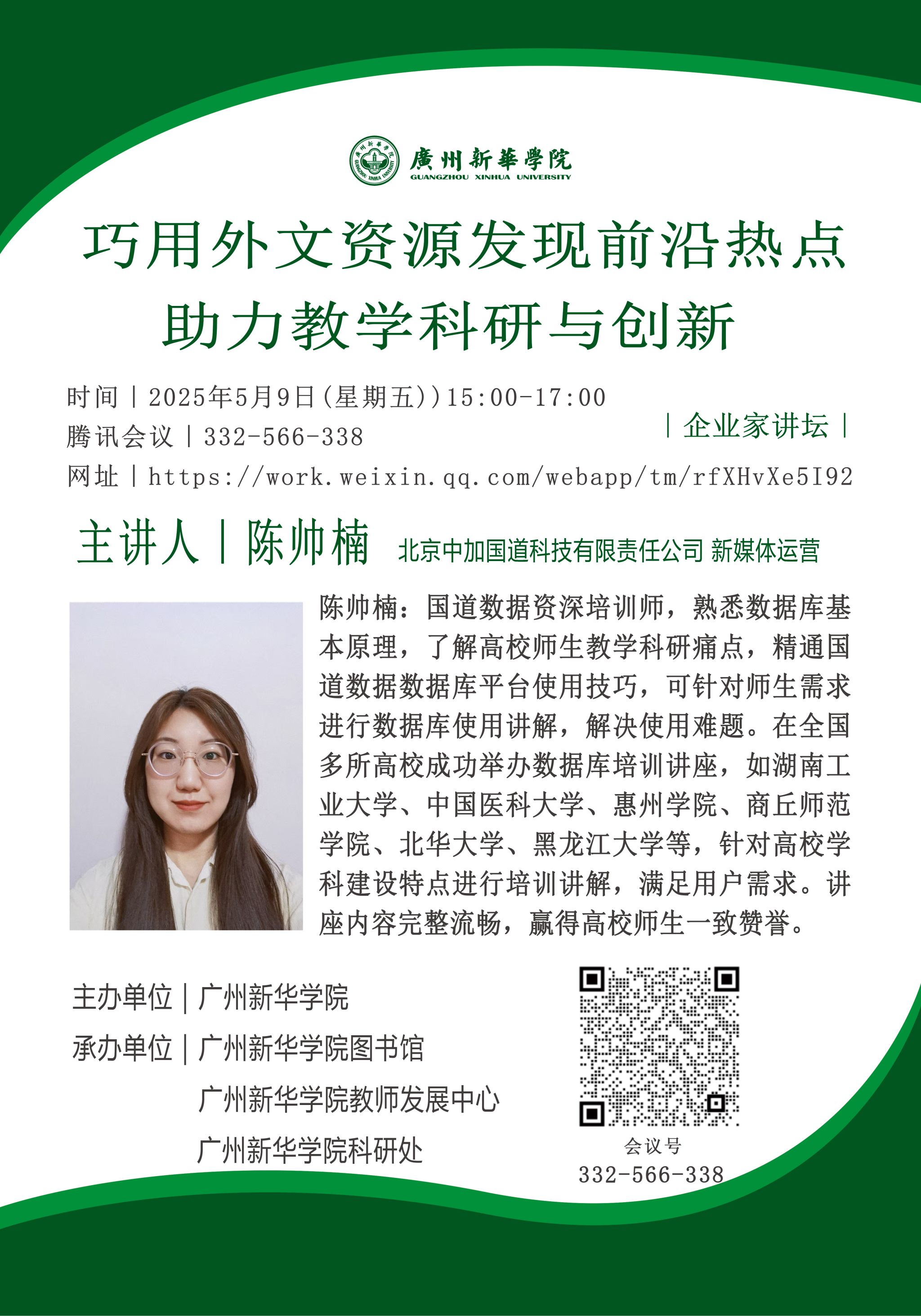 讲座主题:巧用外文资源发现前沿热点助力教学科研与创新